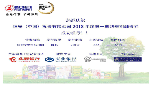 8月30日,尊龙(中国)投资有限公司发行2018年度第一期超短期融资券,发行金额10亿元,期限为270天,主体评级AAA。最终发行价格4.15%,全场申购22.8亿,申购比2.28倍。