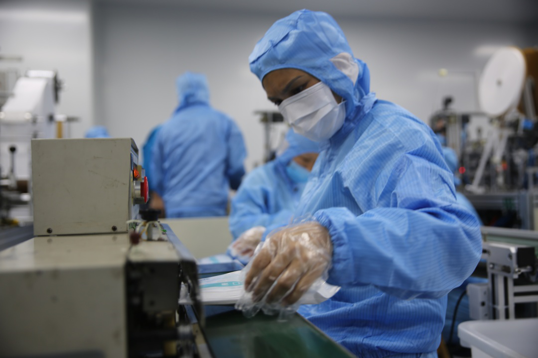 215日,星空娱乐集团新引进的口罩生产线全力开动,正式出产医用口罩产品。据悉,该批5条生产线满负荷运转后,日产口罩约50万片。此前的24日,星空娱乐集团联合晋江兴德织造有限公司启动了防护服生产,目前日均产能可达1000件。